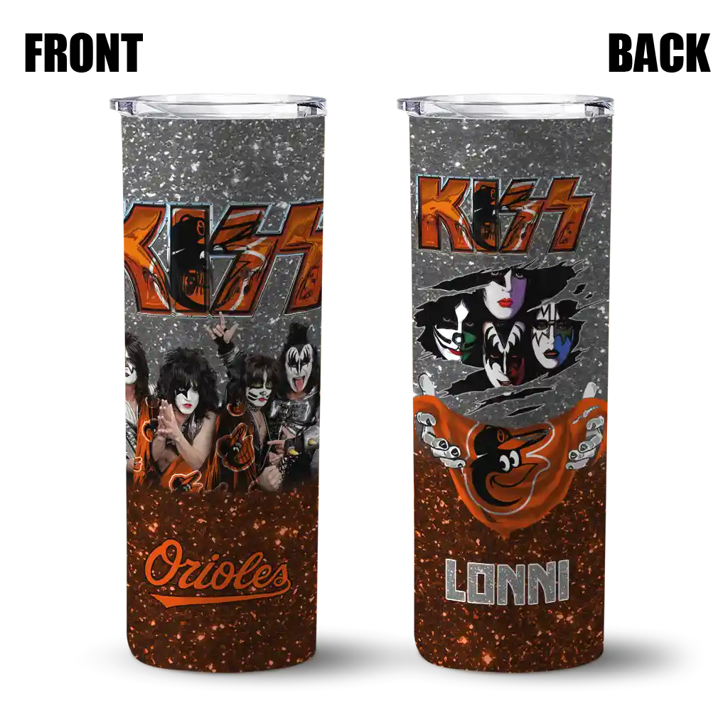 Custom Baltimore Orioles Kiss Band Black Skinny Tumbler