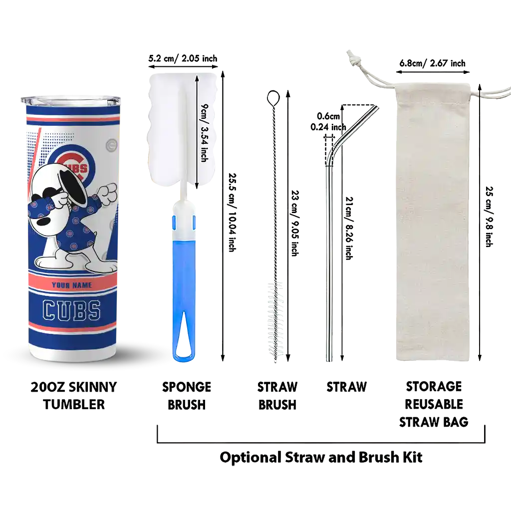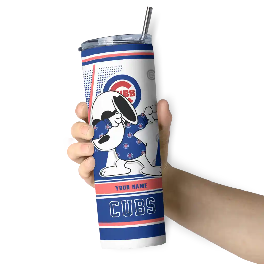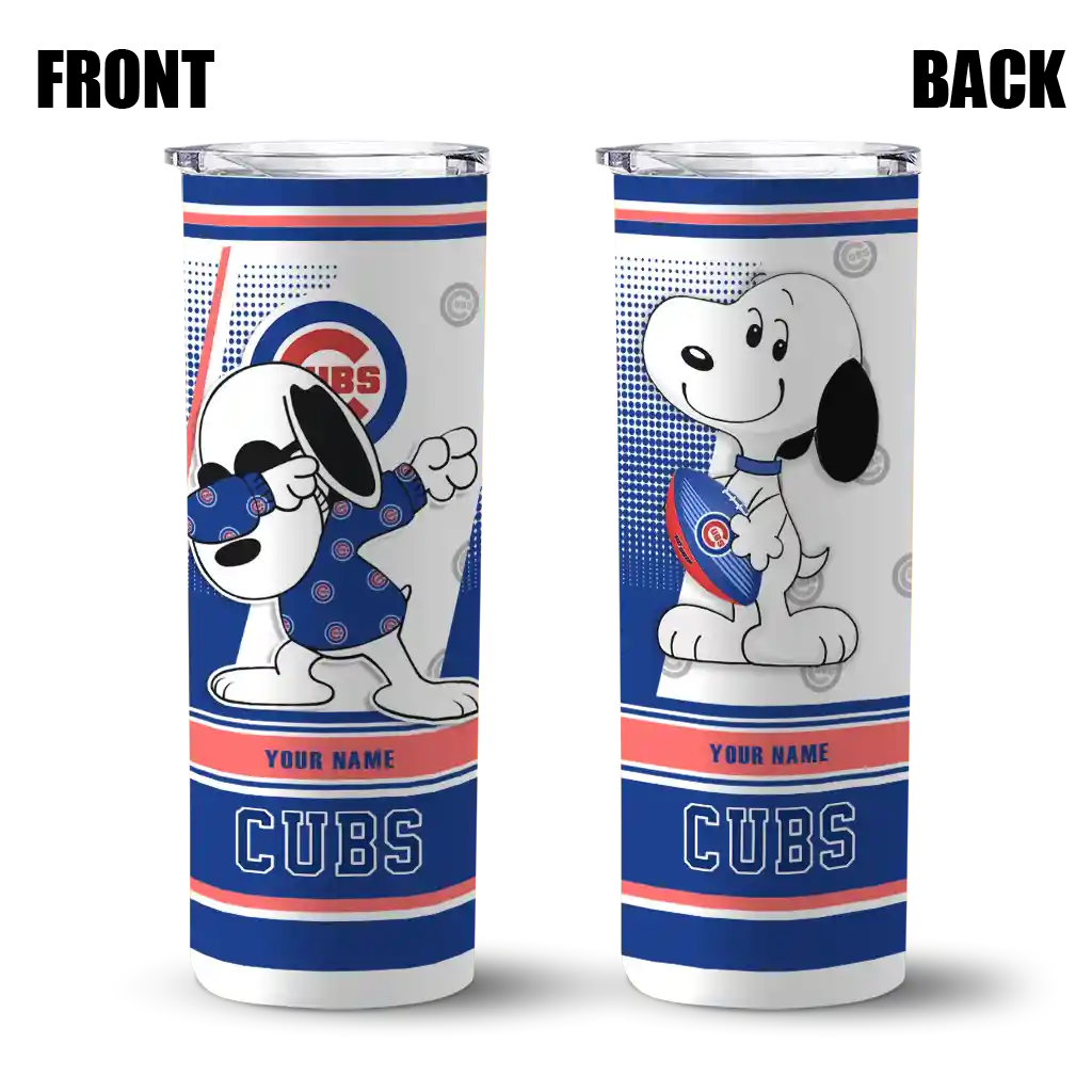 Custom Chicago Cubs Snoopy Dog Blue White Skinny Tumbler