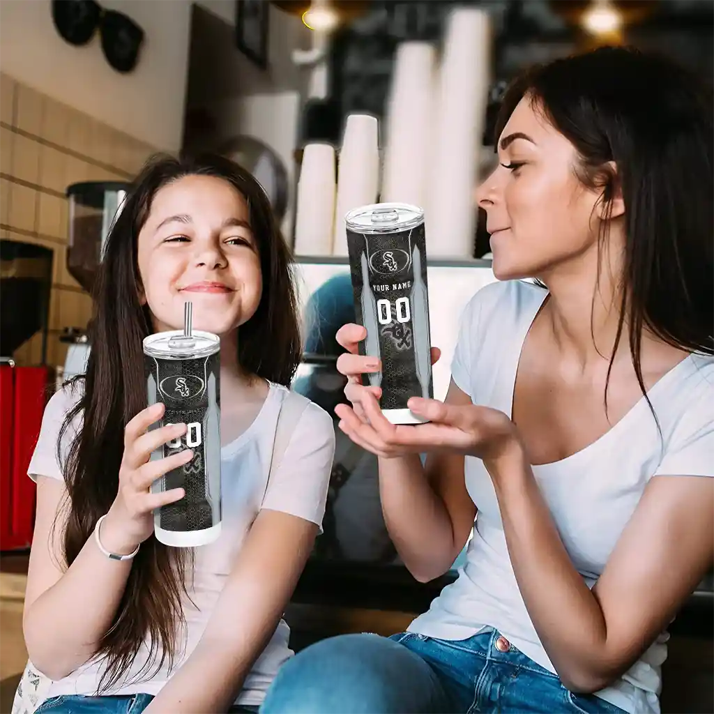 Personalized Chicago White Sox Stacked Diamond Black Skinny Tumbler