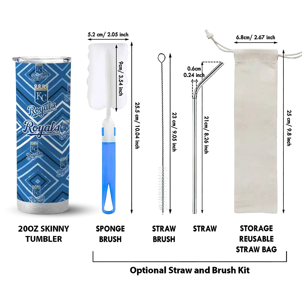 The Custom Kansas City Royals Chevron Angle Royal Blue Curved Tumbler is designed to keep your drinks hot for up to 12 hours or cold for 24, offering both quality and practicality. Featuring a durable stainless steel body and a bold, vibrant team logo, it’s the perfect accessory for fans who want to stay refreshed while proudly representing their team. Inside the box, you’ll find 1 stainless steel tumbler, 1 clear spill-resistant lid, and 1 removable straw, making it everything you need to enjoy your drink on the go, all while showing off your team spirit.