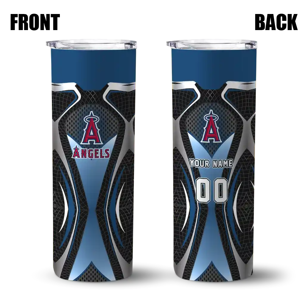 The Customized Los Angeles Angels Arrow Armor Blue Black Curved Tumbler is designed to keep your drinks hot for up to 12 hours or cold for 24, offering both quality and practicality. Featuring a durable stainless steel body and a bold, vibrant team logo, it’s the perfect accessory for fans who want to stay refreshed while proudly representing their team. Inside the box, you’ll find 1 stainless steel tumbler, 1 clear spill-resistant lid, and 1 removable straw, making it everything you need to enjoy your drink on the go, all while showing off your team spirit.