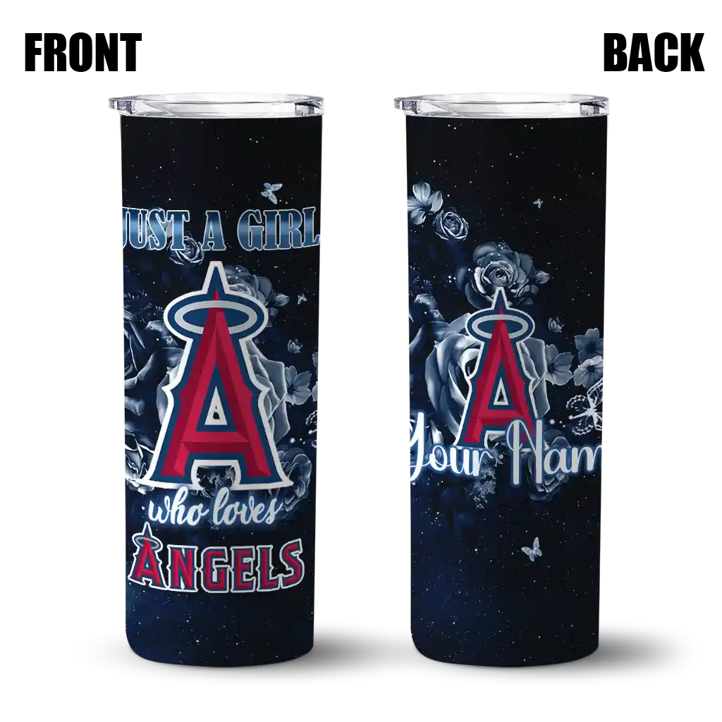 Customized Los Angeles Angels Rose Romance Blue Black Skinny Tumbler