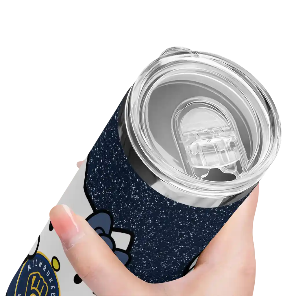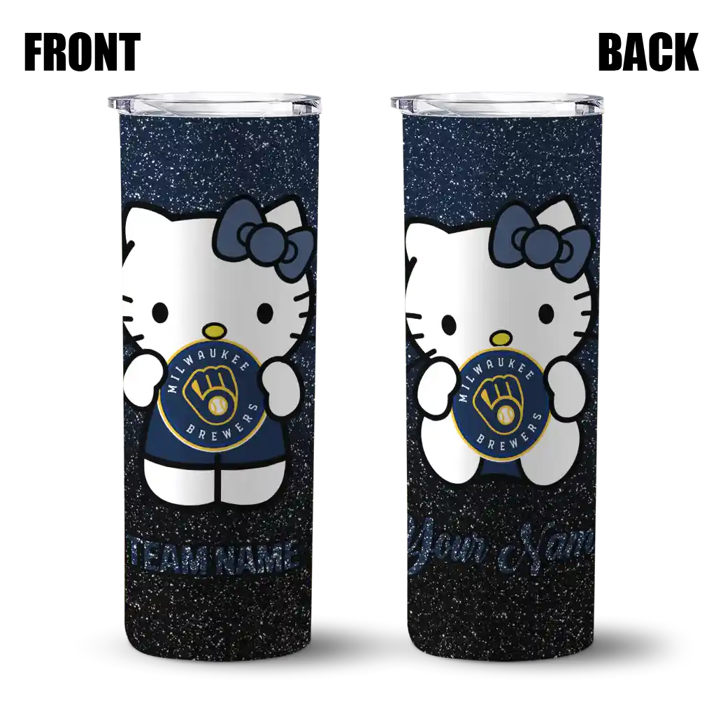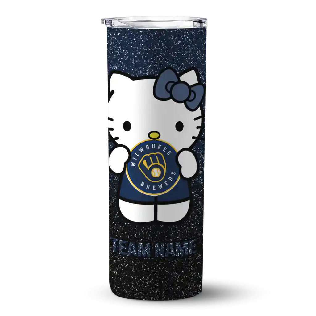Custom Milwaukee Brewers Hello Kitty Navy Blue Black Skinny Tumbler