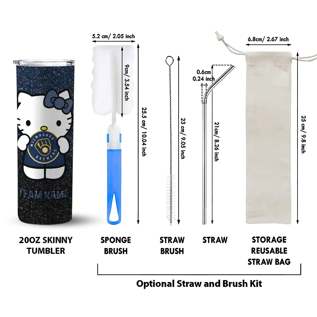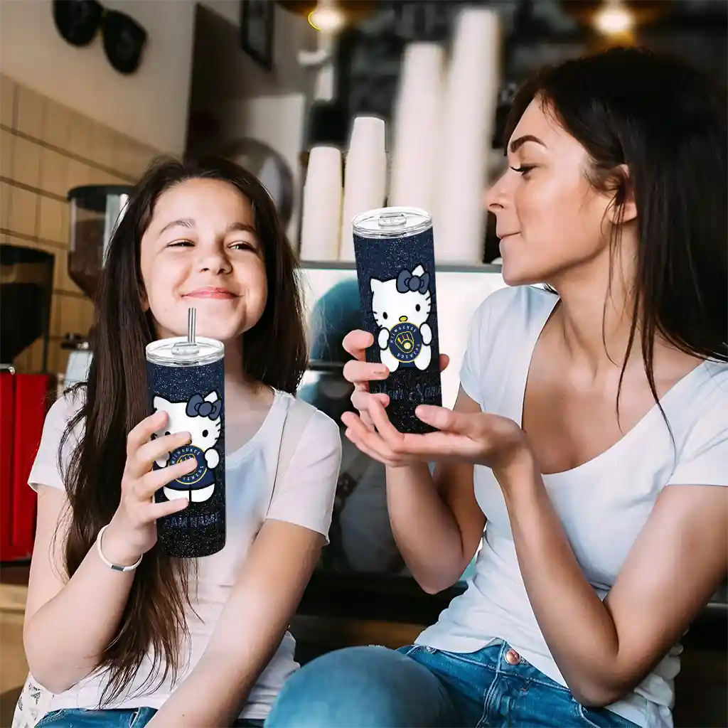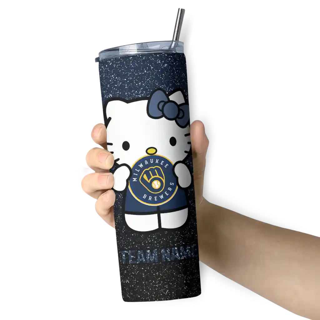 Custom Milwaukee Brewers Hello Kitty Navy Blue Black Skinny Tumbler