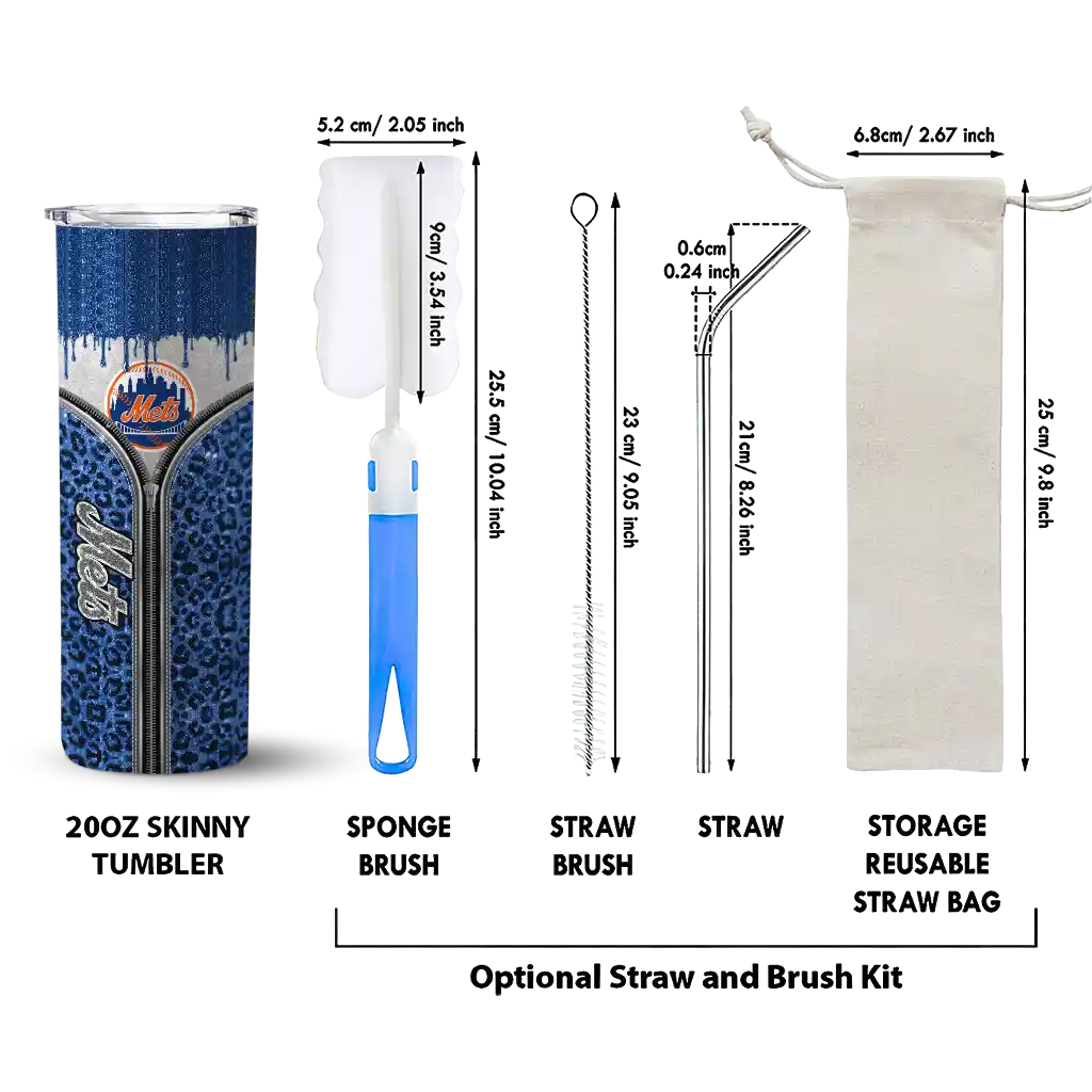 Custom New York Mets Sparkle Drip Blue Skinny Tumbler