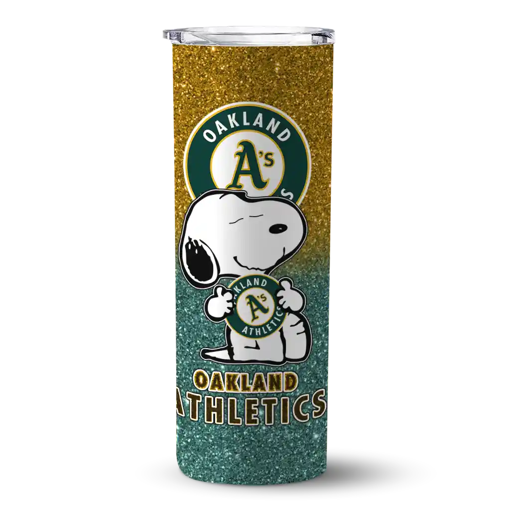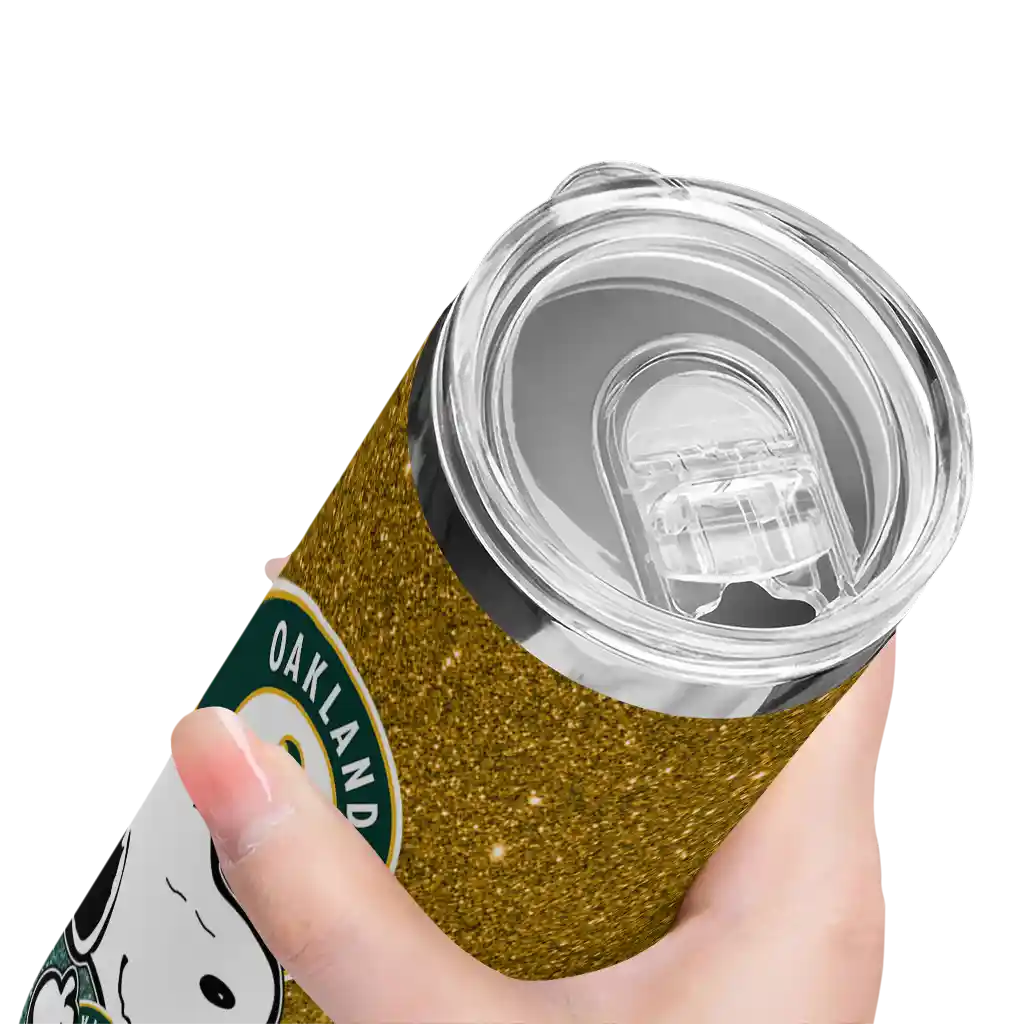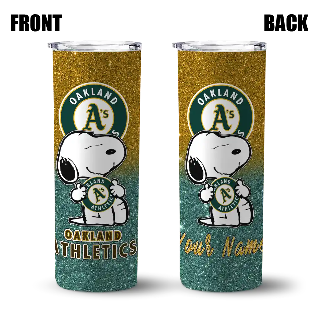 Customized Oakland Athletics Snoopy Attitude Green Skinny Tumbler