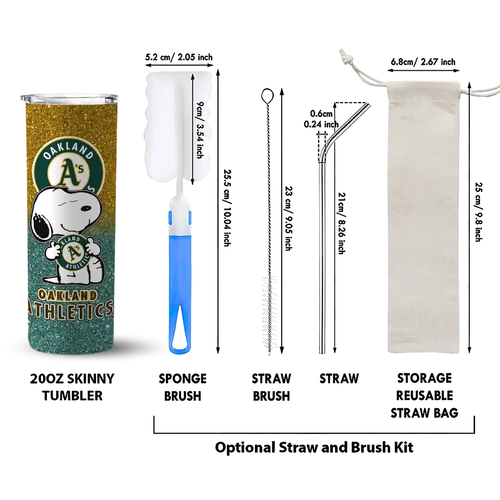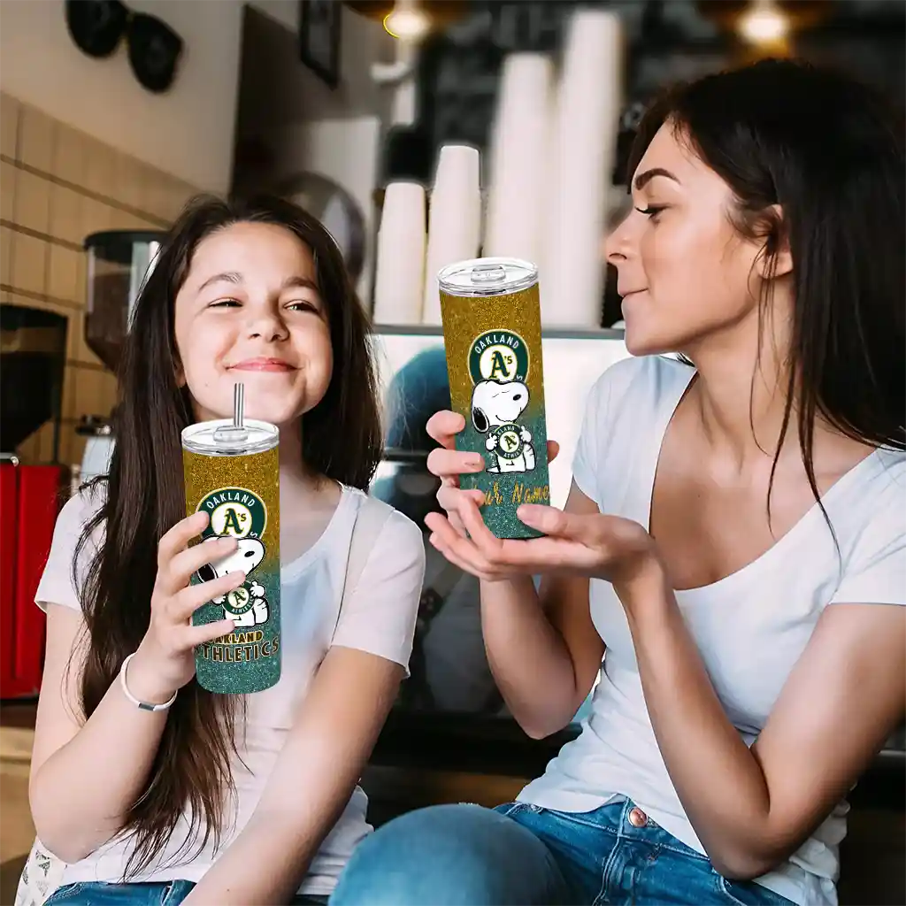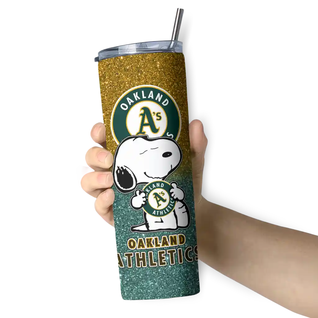 Customized Oakland Athletics Snoopy Attitude Green Skinny Tumbler