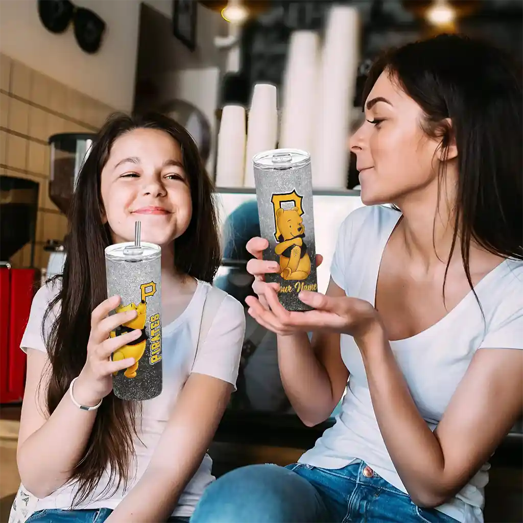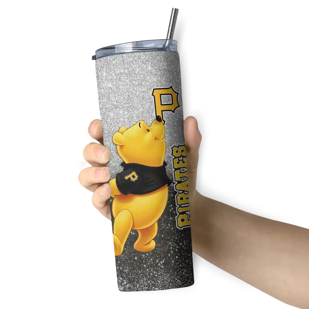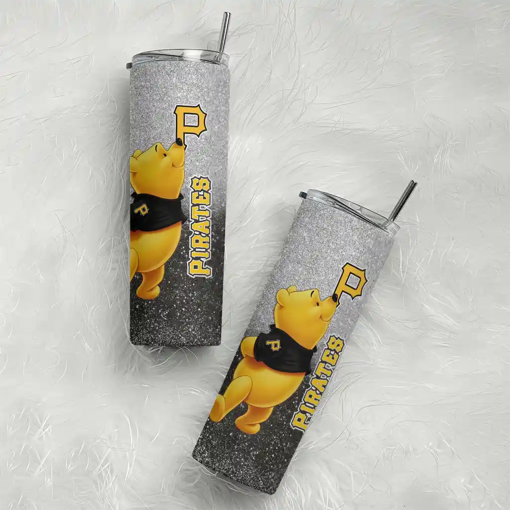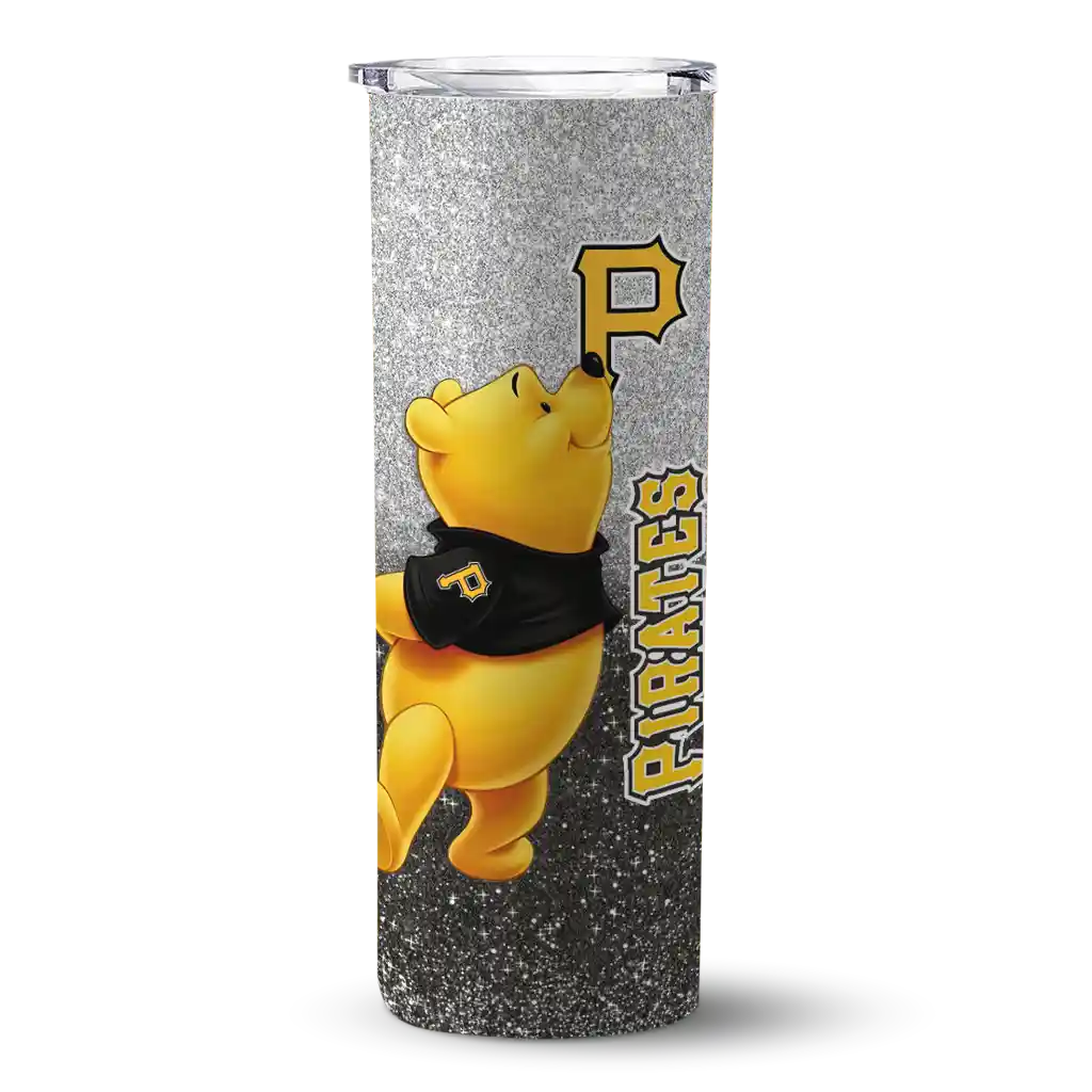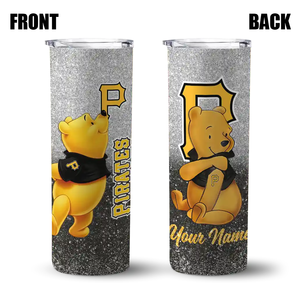 Personalized Pittsburgh Pirates Winnie the Pooh Black Gray Skinny Tumbler
