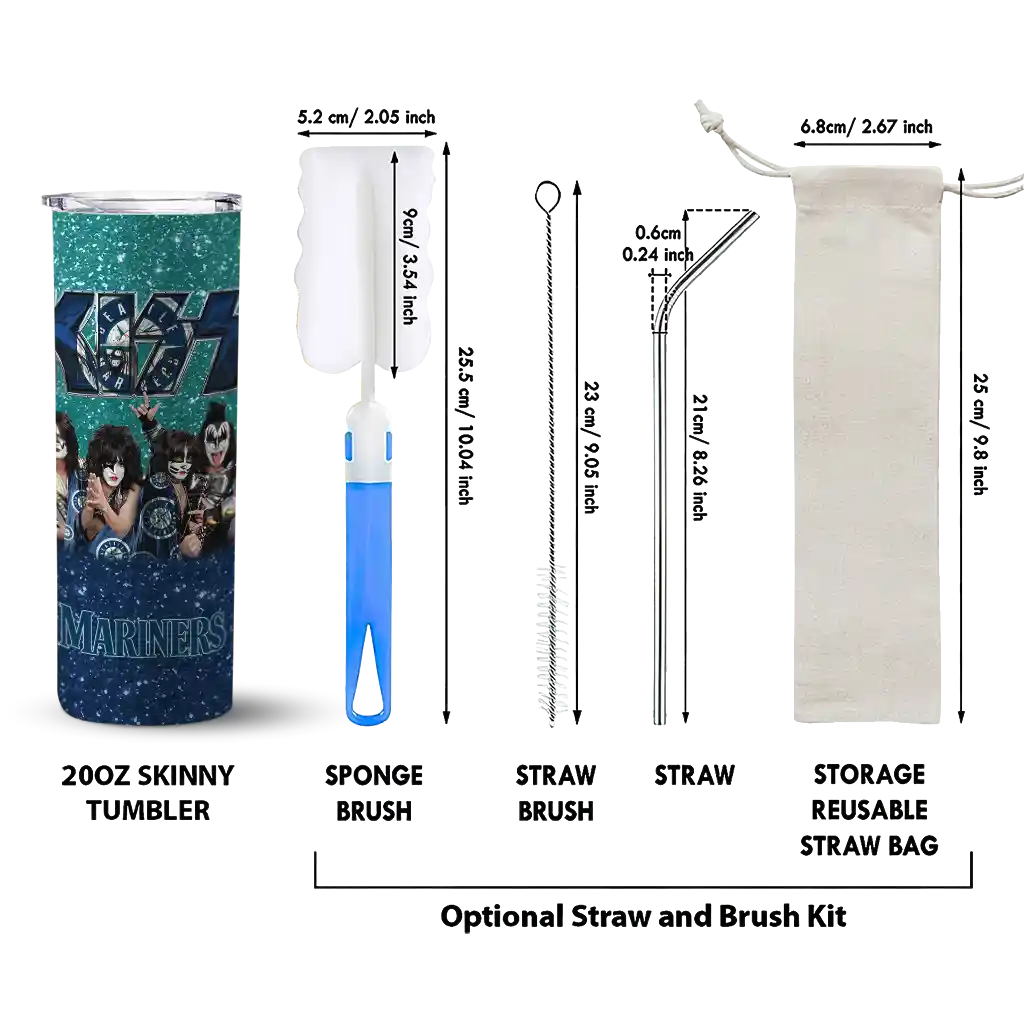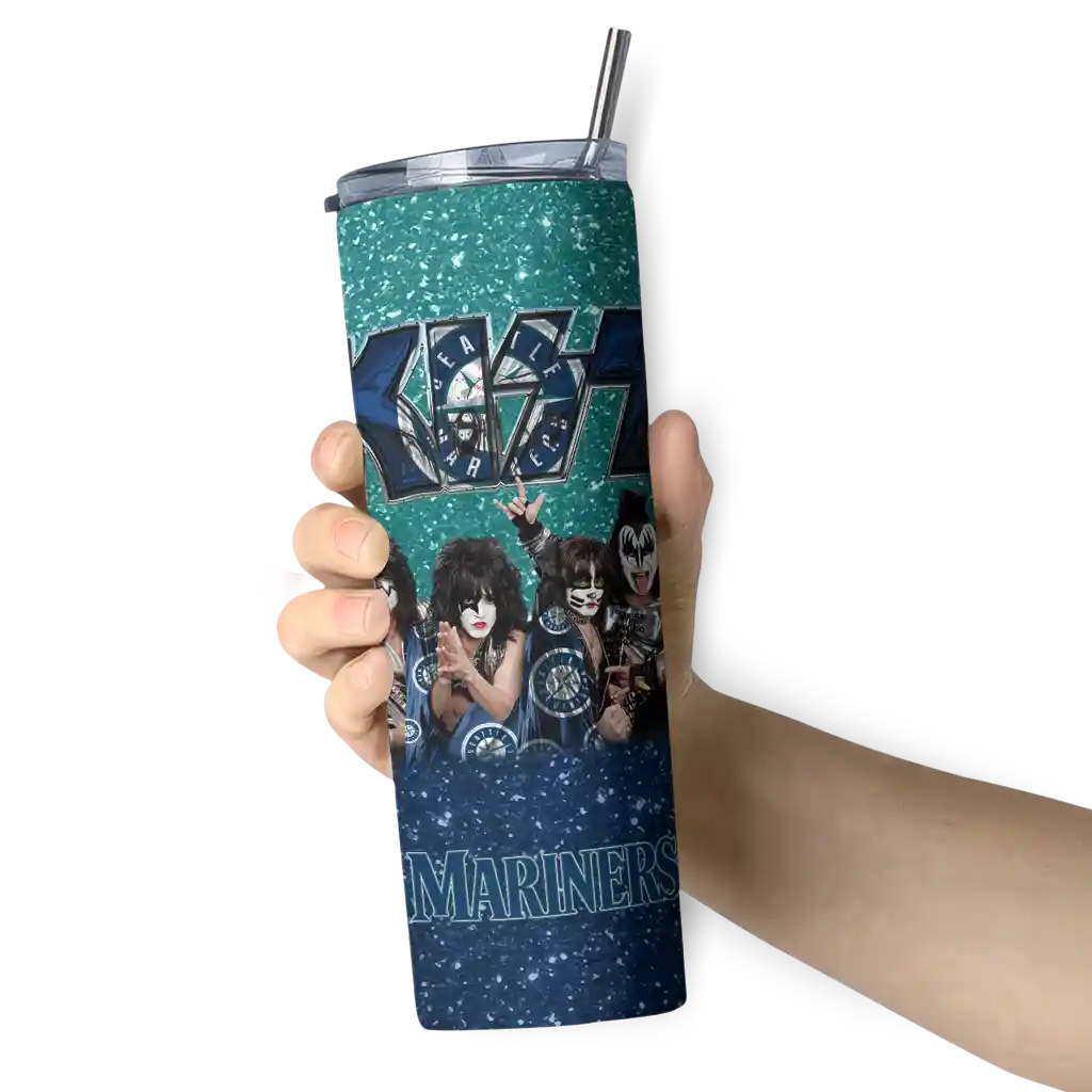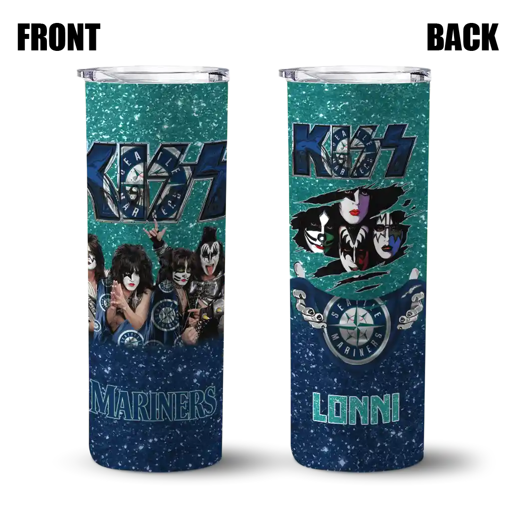 Customized Seattle Mariners Kiss Band Green Skinny Tumbler