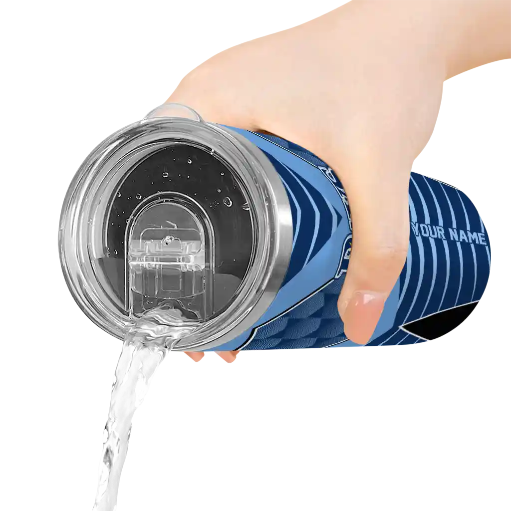 The Custom Tampa Bay Rays Claw Cut Navy Black Curved Tumbler is designed to keep your drinks hot for up to 12 hours or cold for 24, offering both quality and practicality. Featuring a durable stainless steel body and a bold, vibrant team logo, it’s the perfect accessory for fans who want to stay refreshed while proudly representing their team. Inside the box, you’ll find 1 stainless steel tumbler, 1 clear spill-resistant lid, and 1 removable straw, making it everything you need to enjoy your drink on the go, all while showing off your team spirit.