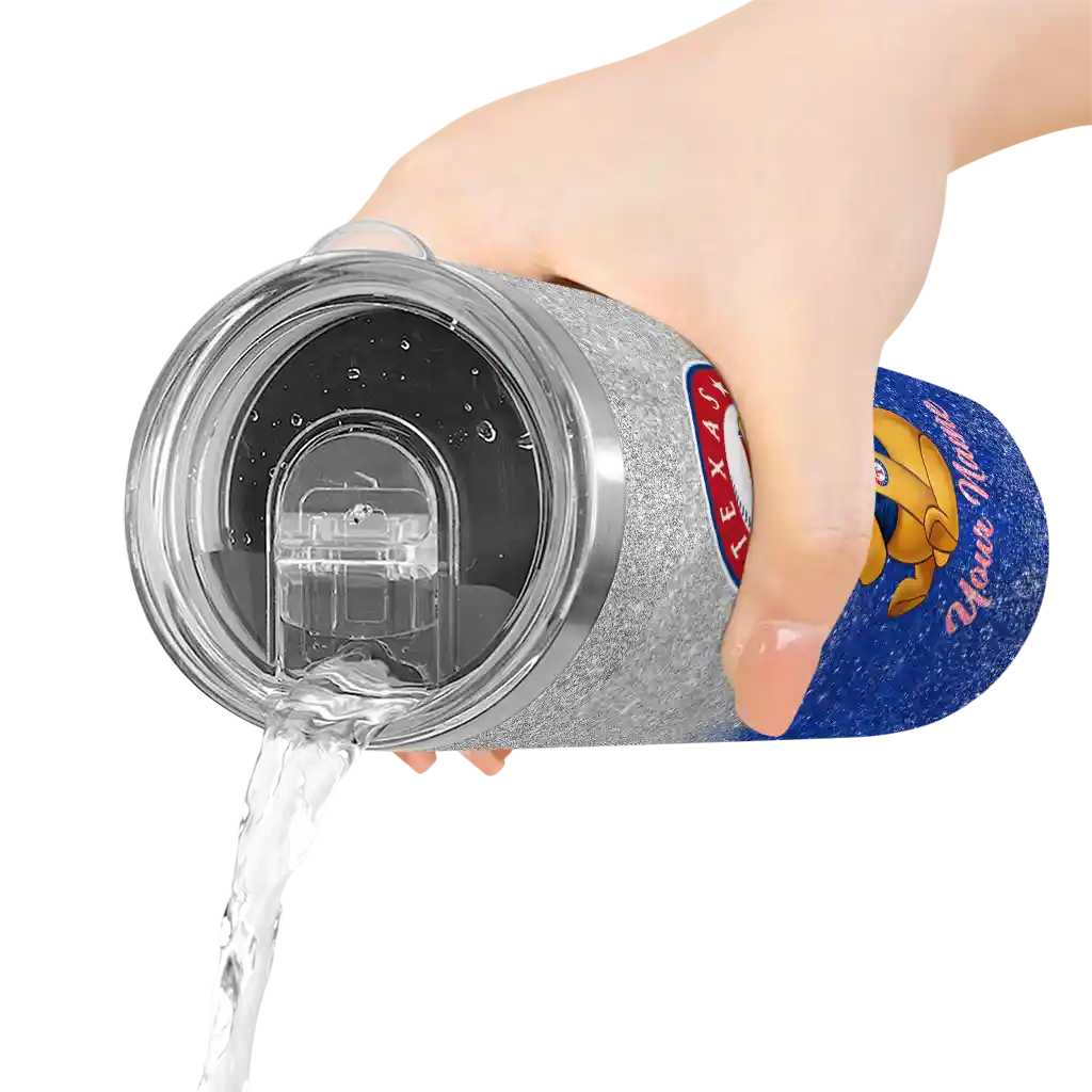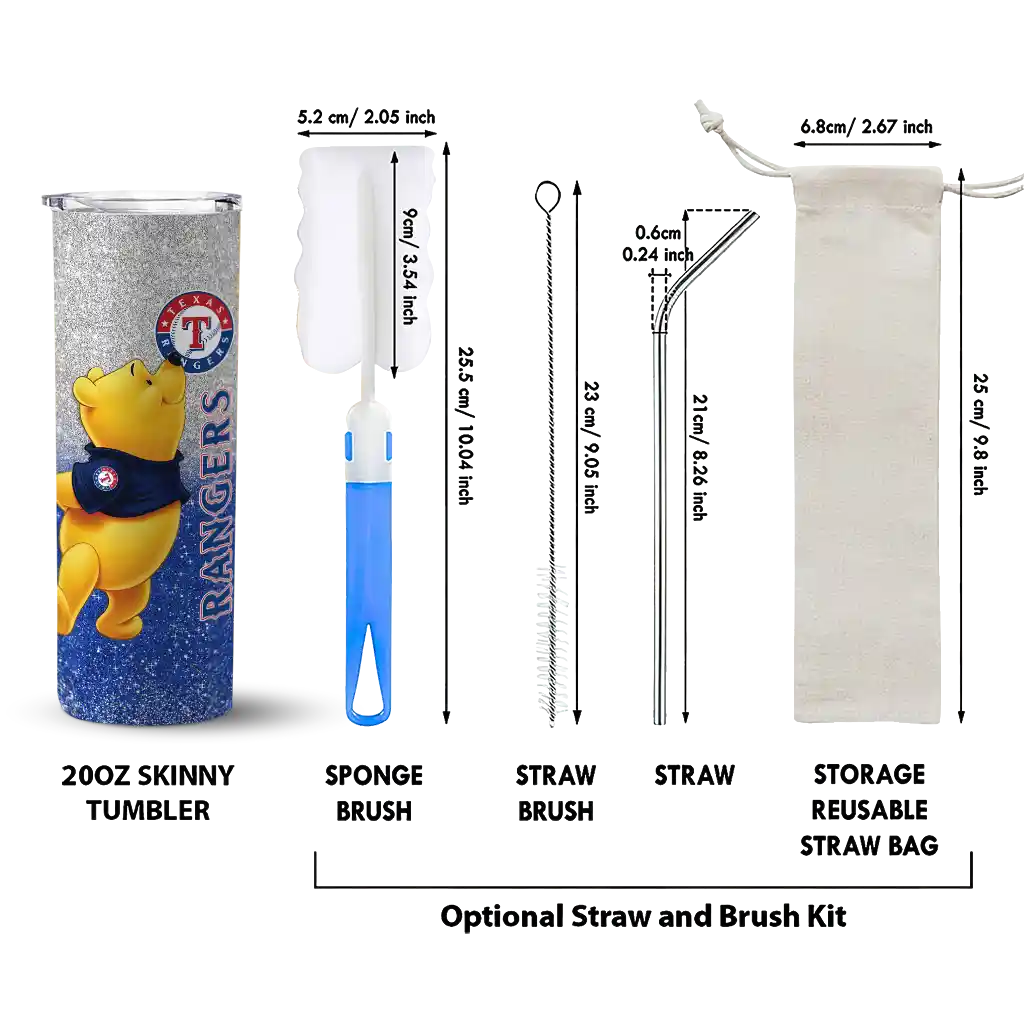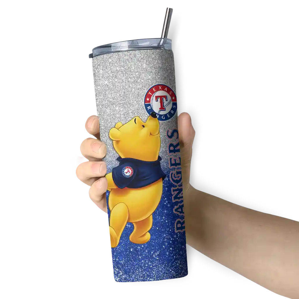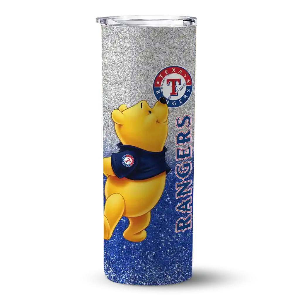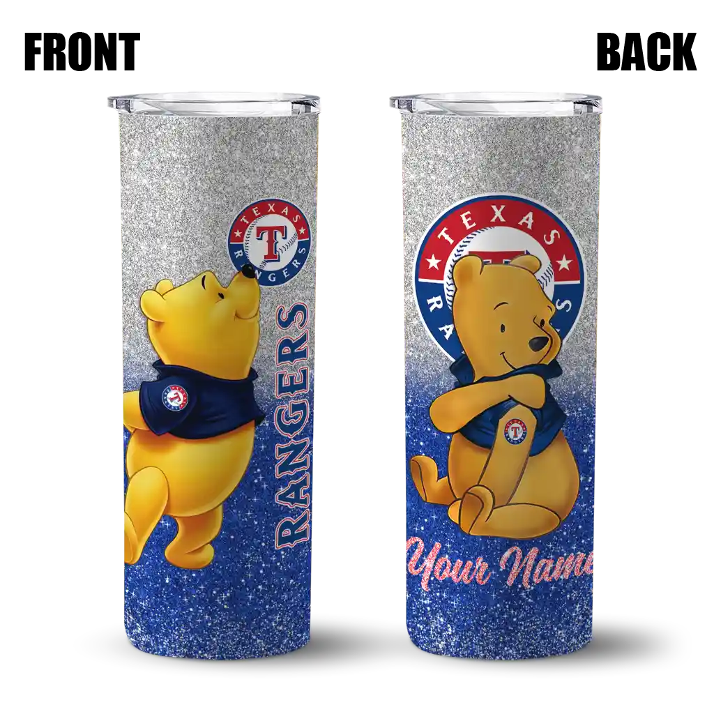 Personalized Texas Rangers Winnie the Pooh Blue Gray Skinny Tumbler