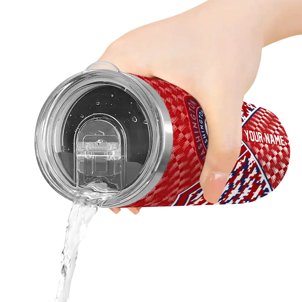 The Customized Washington Nationals Chevron Layers Red Curved Tumbler is designed to keep your drinks hot for up to 12 hours or cold for 24, offering both quality and practicality. Featuring a durable stainless steel body and a bold, vibrant team logo, it’s the perfect accessory for fans who want to stay refreshed while proudly representing their team. Inside the box, you’ll find 1 stainless steel tumbler, 1 clear spill-resistant lid, and 1 removable straw, making it everything you need to enjoy your drink on the go, all while showing off your team spirit.